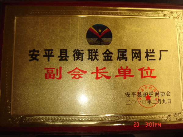 本单位非常荣幸被选举为护栏网协会副会长单位,我们将一如既往发挥护栏网协会作用,改进监管,强化自律,坚强建设,努力推进护栏网行业健康发展。