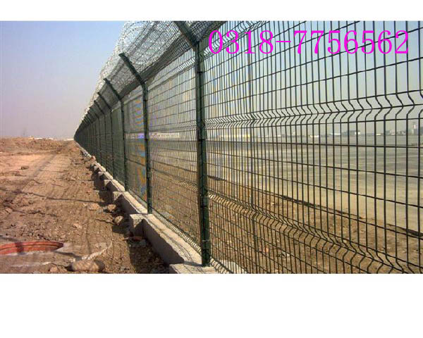 3. 在机场护栏网的横向加装四道折弯加强筋,在整体成本增加不多的同时,使网面强度和美感显著增加,是目前国内外最受欢迎之一。