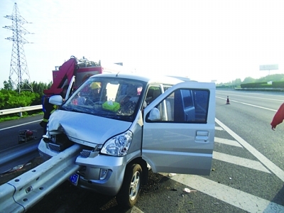 护栏最低也要1米多高,面包车是如何跃上护栏的,横跨在护栏上,希望能够尽快调查清楚,给伤员司机一个公平答复。